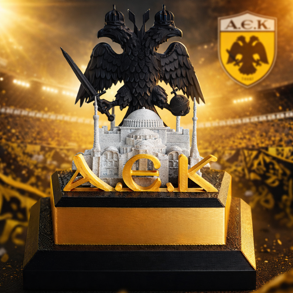 Ανακάλυψε ένα μοναδικό διακοσμητικό ενθύμιο αφιερωμένο στην ιστορία και το πάθος της Α.Ε.Κ. Ένα εντυπωσιακό κομμάτι που συνδυάζει αισθητική, συμβολισμό και σύγχρονη τεχνολογία, ιδανικό για κάθε φίλο της ομάδας που θέλει να έχει ένα ξεχωριστό στοιχείο στη συλλογή του.
